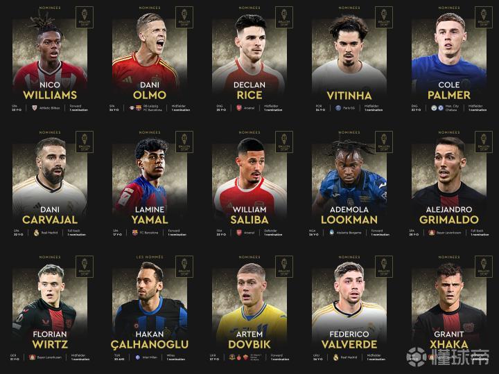 2024年金球奖30人候选名单终于揭晓,其中最吸引眼球的部分莫过于15名首次入围的球员。西班牙的尼科-威廉斯来自毕尔巴鄂竞技,他凭借出色的表现脱颖而出,成为这份榜单的一员。而来自西班牙的奥尔莫则代表莱比锡、巴塞罗那,年仅20岁就跻身金球奖候选行列,可谓实力不俗。